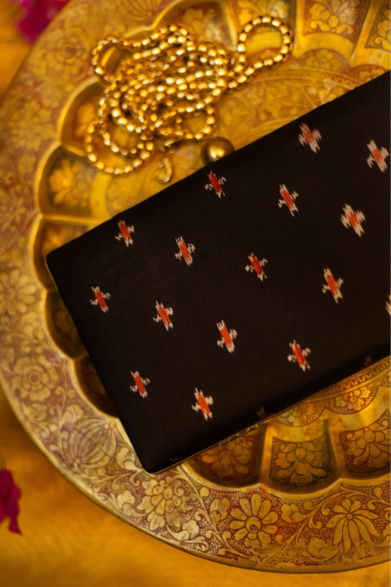 These gorgeous ones are made of hand woven pure mulberry silk .This ikkat fabric clutch have Traditional designs. It’s a pure piece of elegance and hardwork of the master weavers.