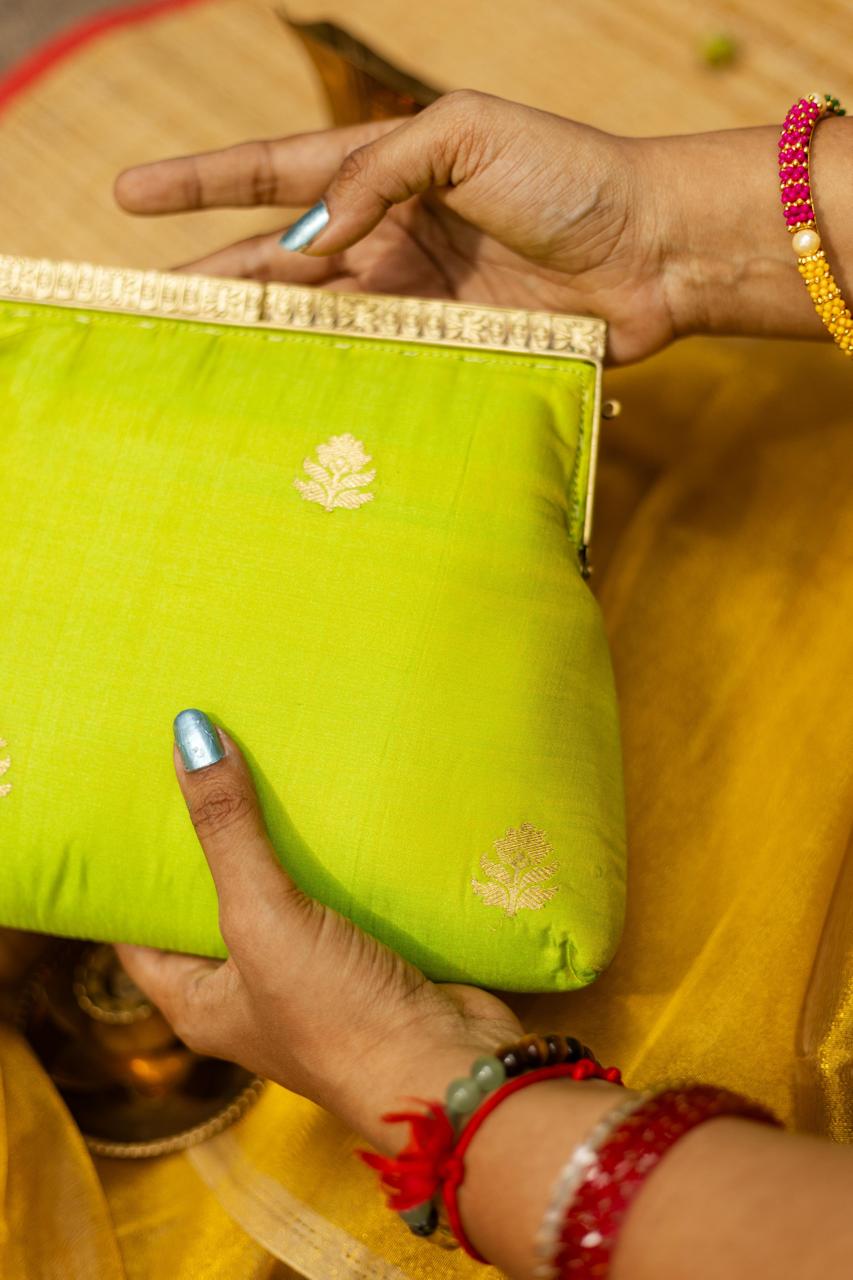 Test First: Always test the solution on an unseen part of the clutch (like inside the flap or bottom) to ensure no color bleeding or fabric damage.