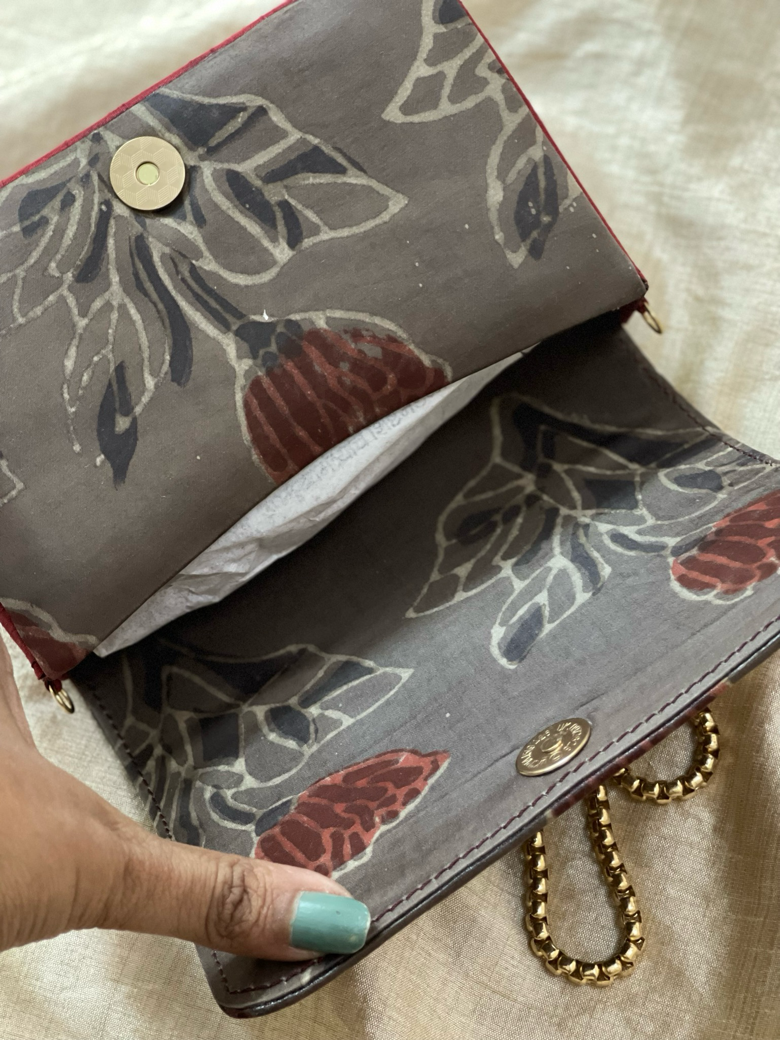 Test First: Always test the solution on an unseen part of the clutch (like inside the flap or bottom) to ensure no color bleeding or fabric damage.