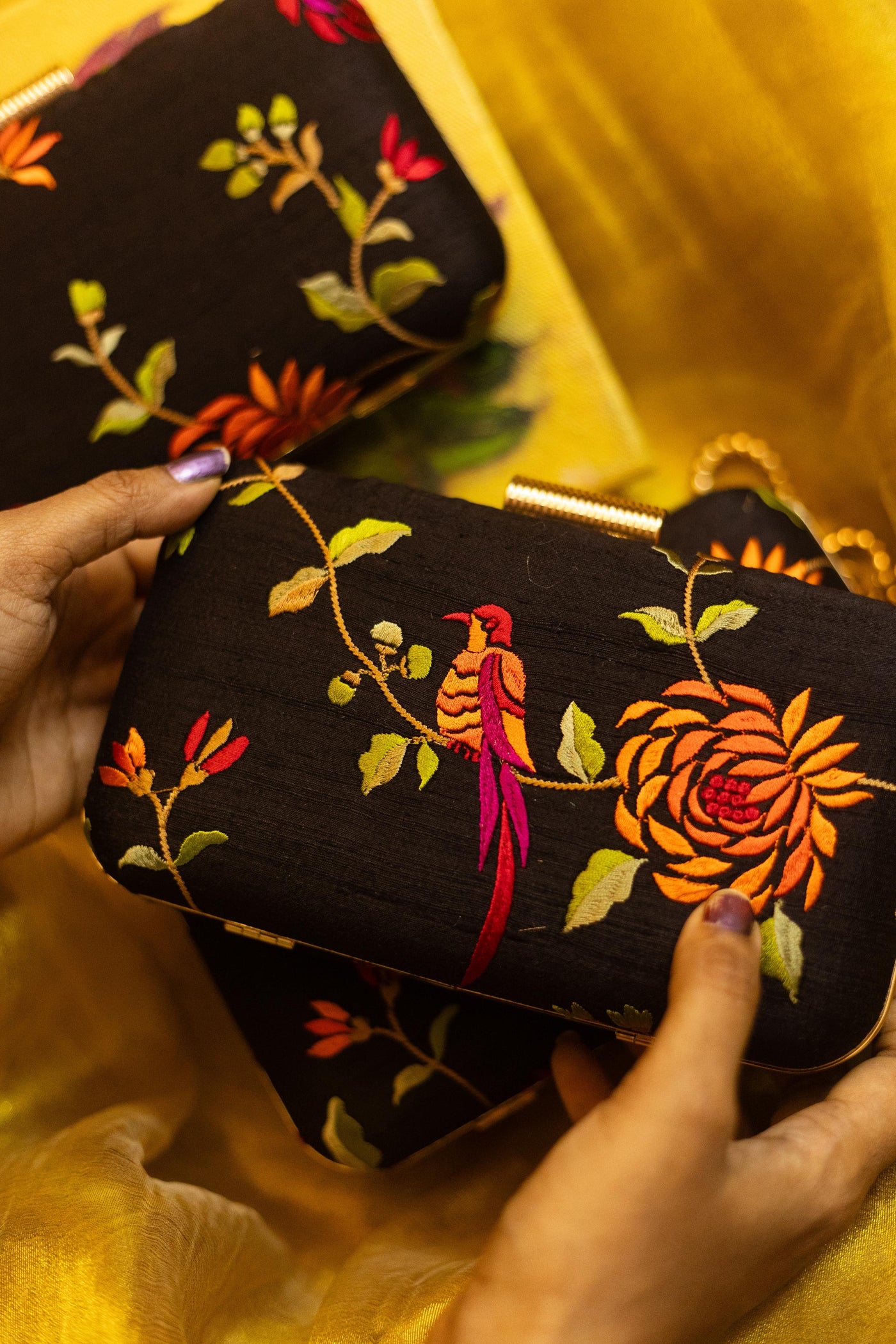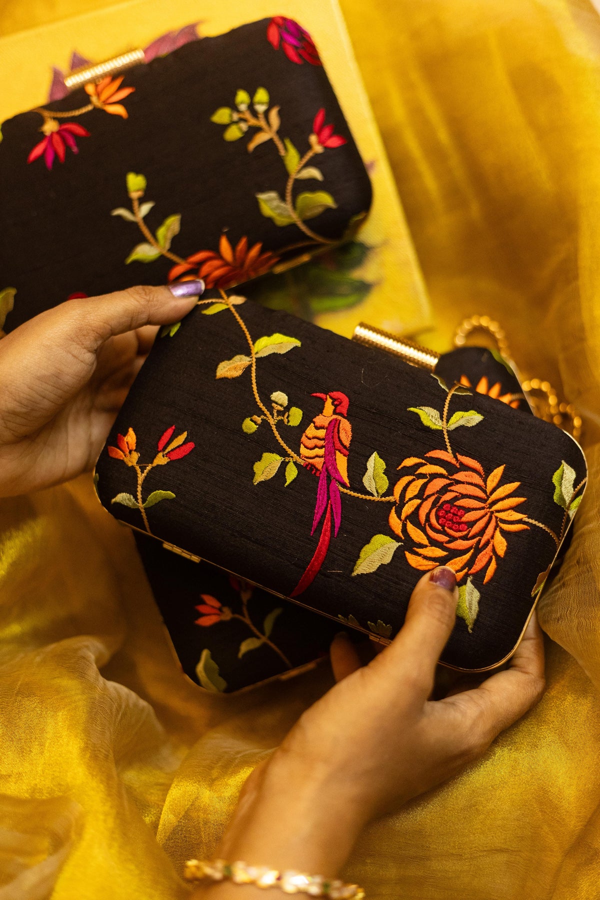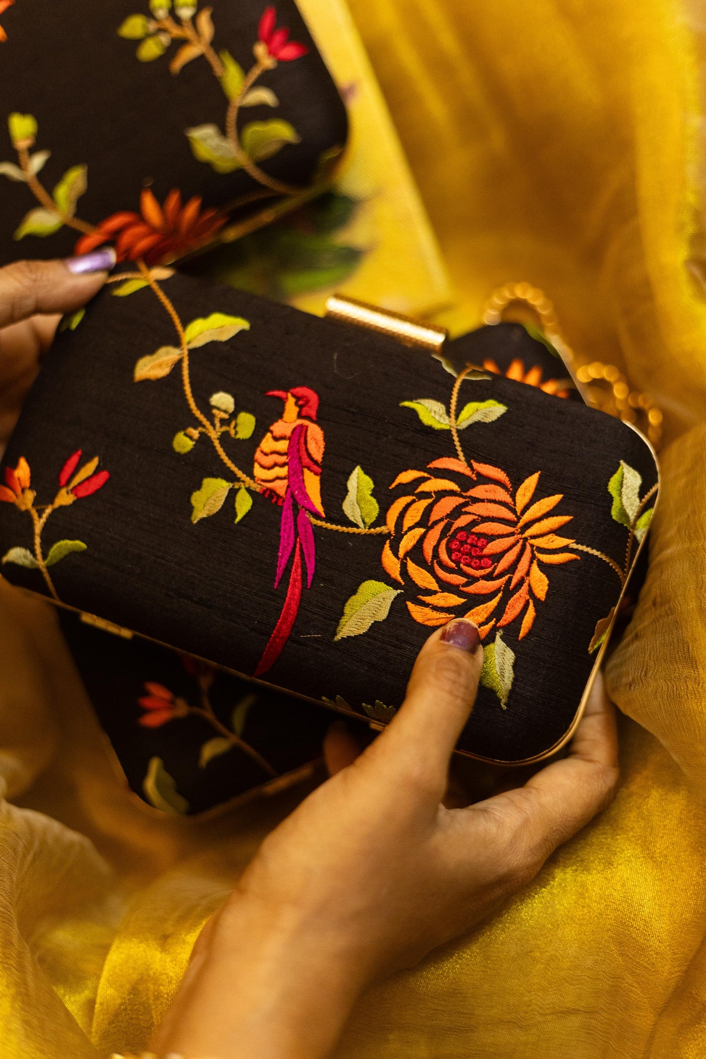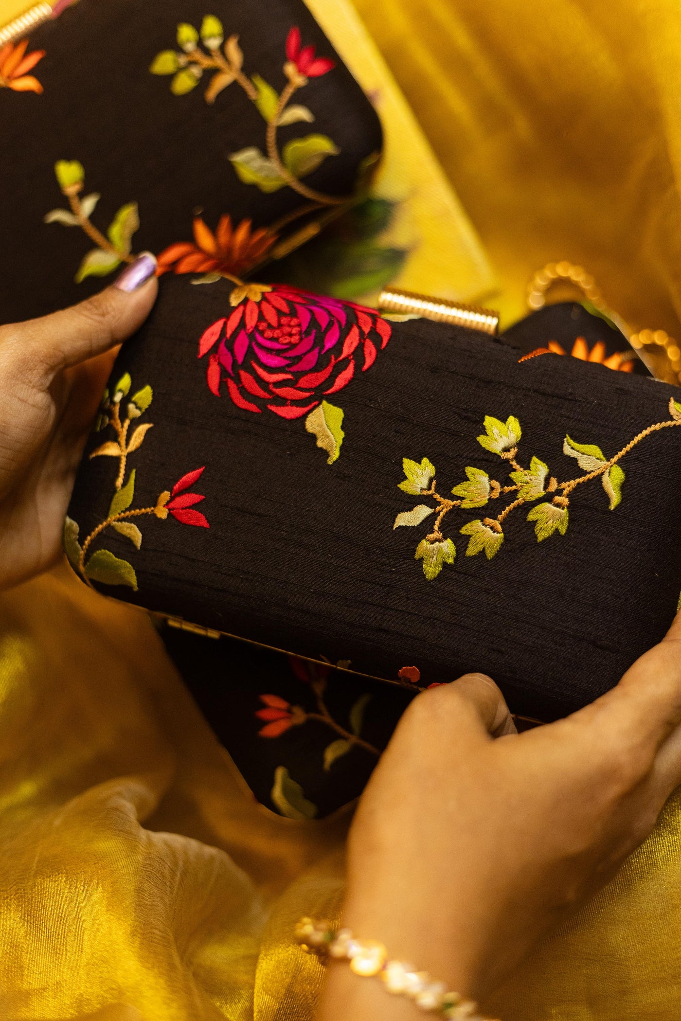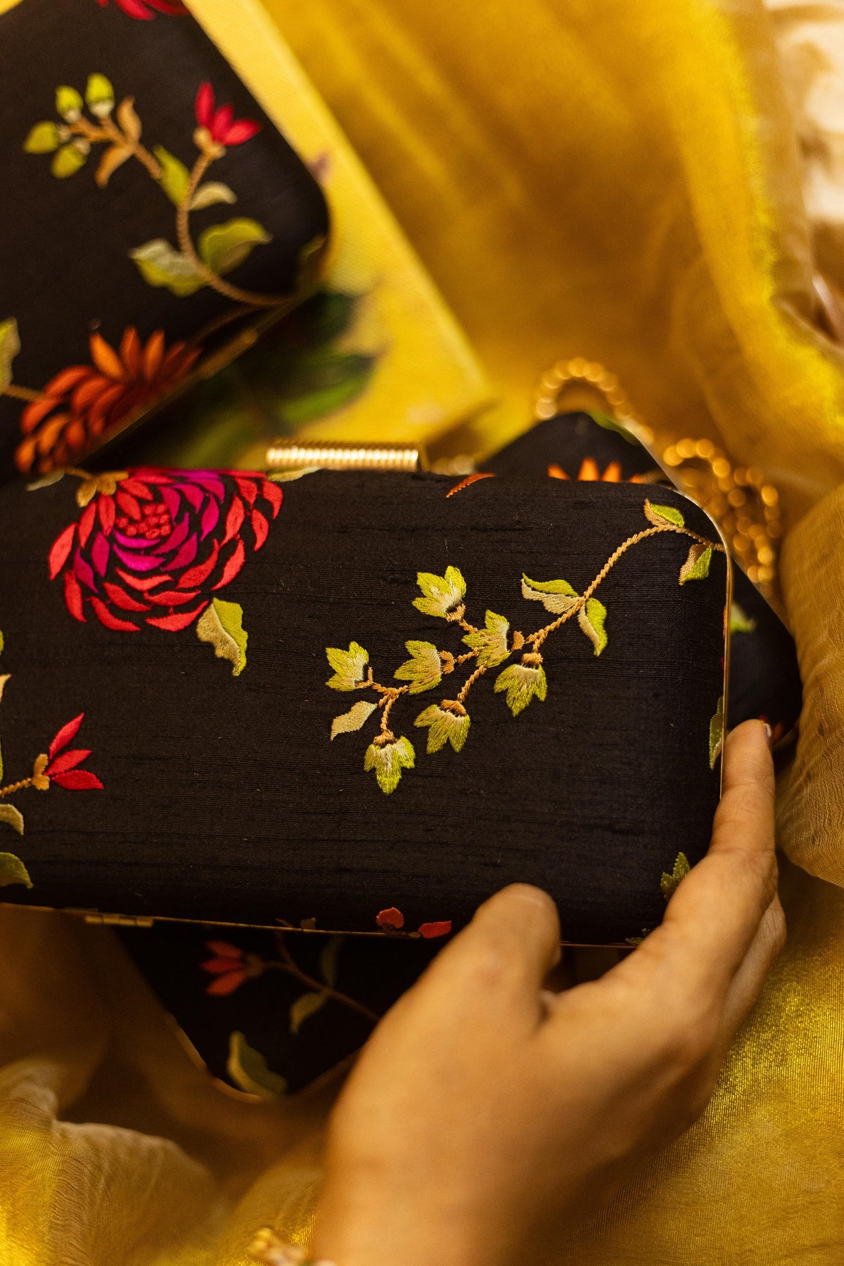 Test First: Always test the solution on an unseen part of the clutch (like inside the flap or bottom) to ensure no color bleeding or fabric damage.
