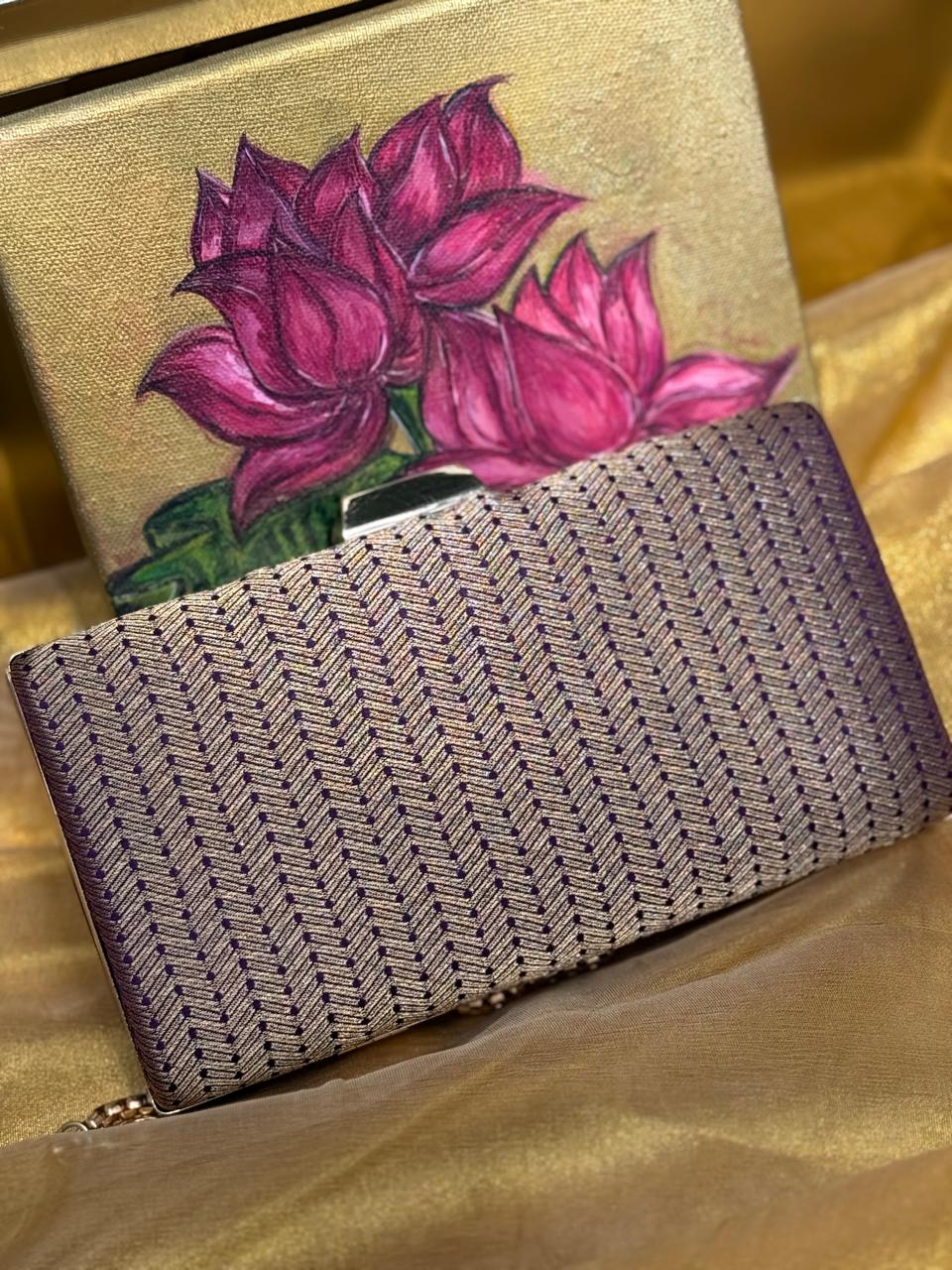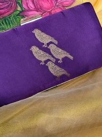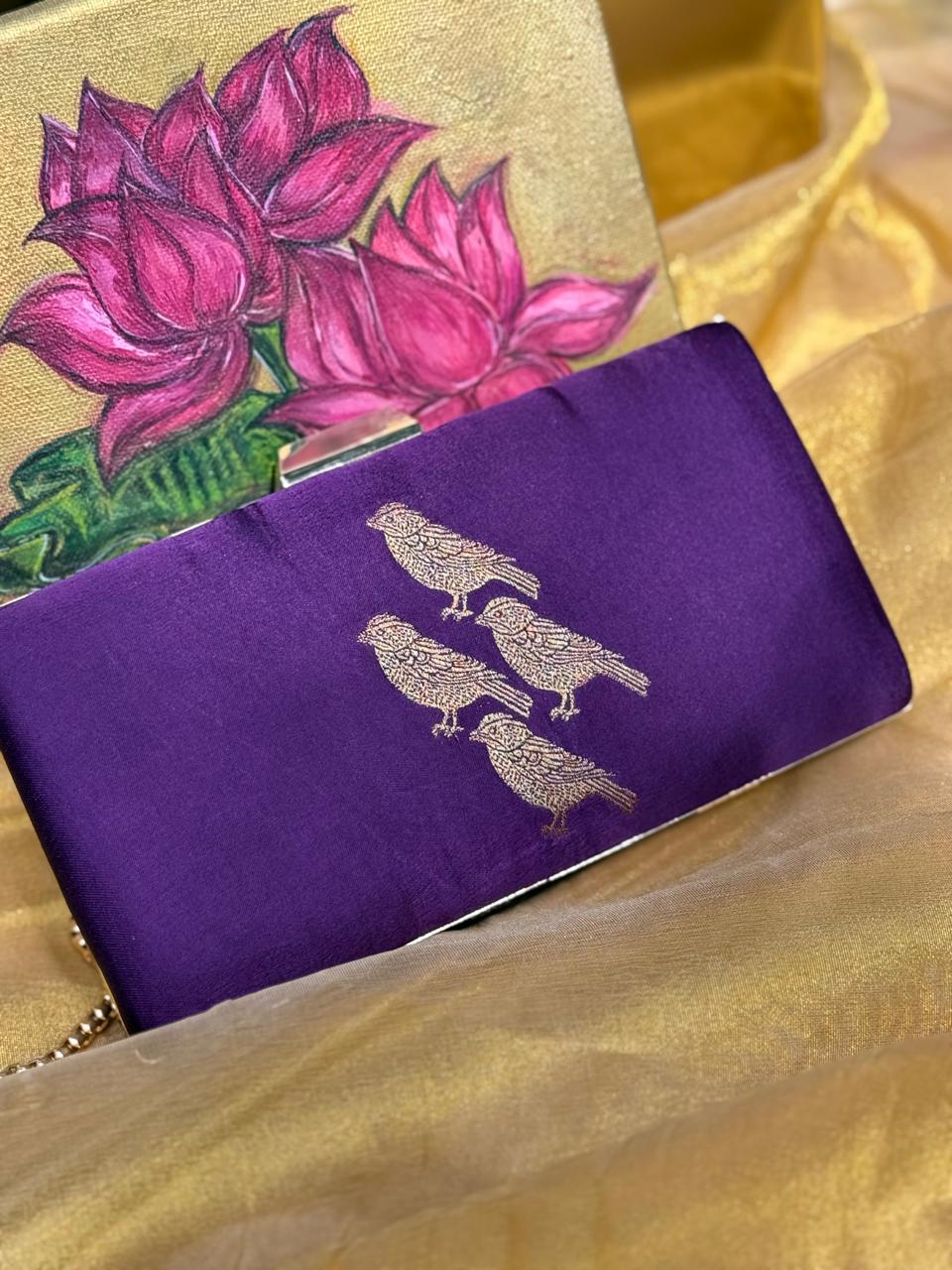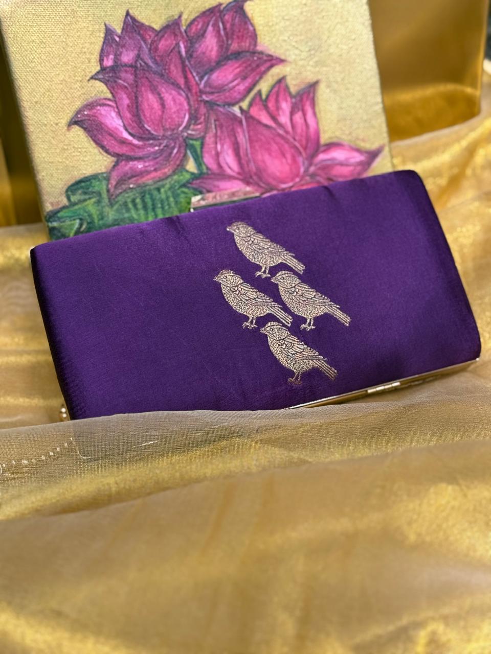 The classy clutch is ideal for flaunting your ethnic style at weddings and traditional gatherings. The strikingly bold looking motifs features fauna and flora motifs on a blue background.