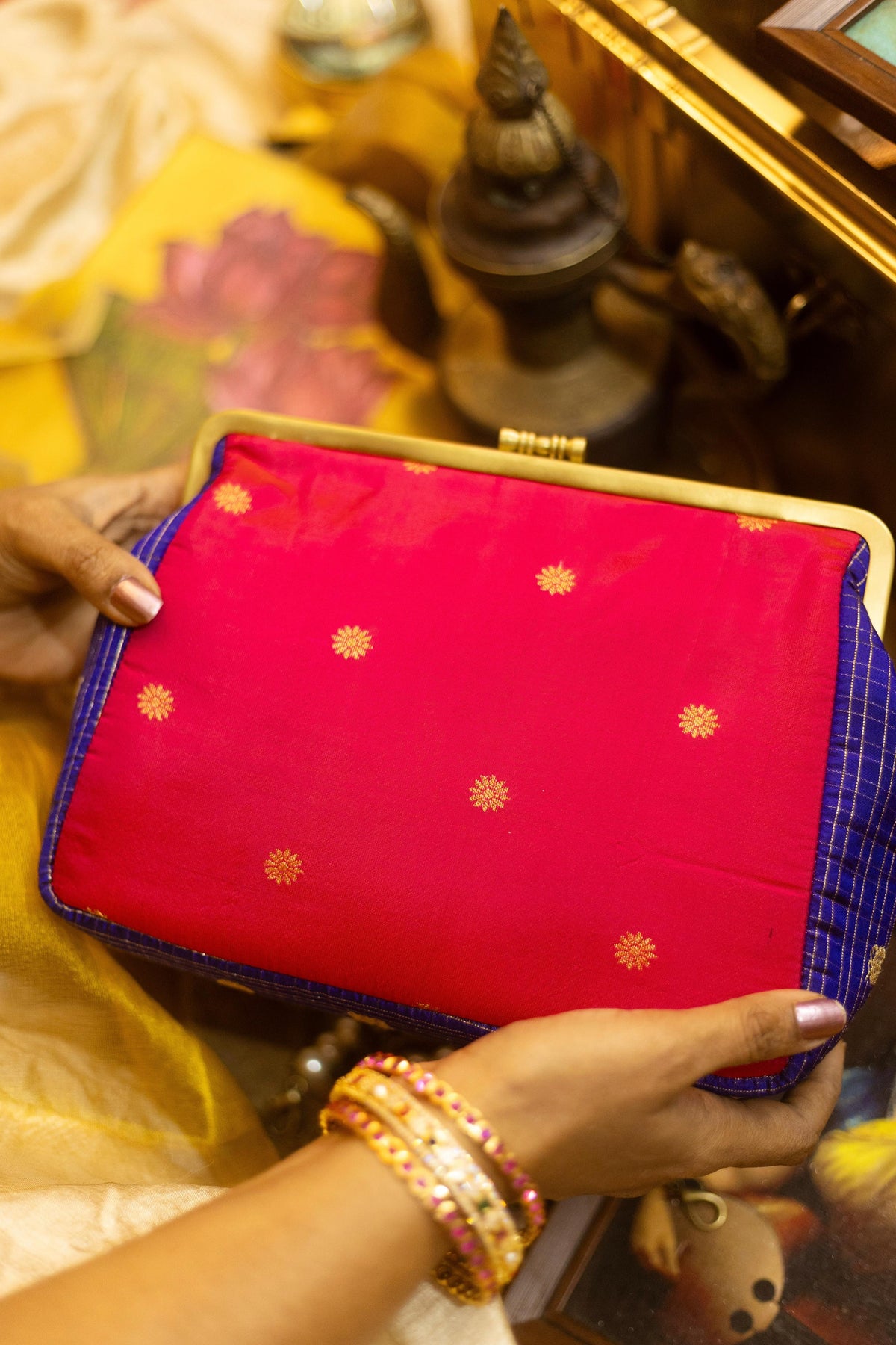 Test First: Always test the solution on an unseen part of the clutch (like inside the flap or bottom) to ensure no color bleeding or fabric damage.