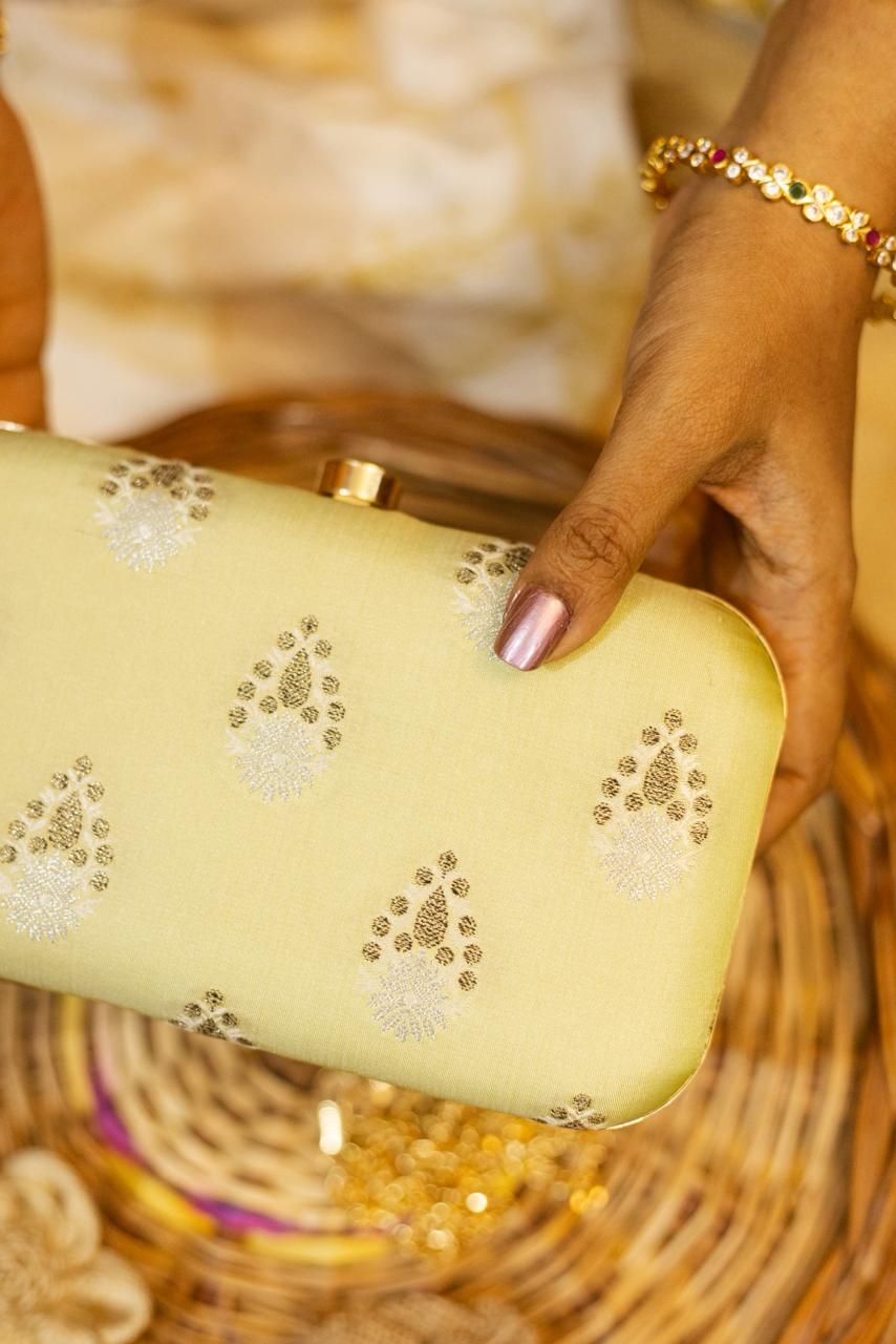 Test First: Always test the solution on an unseen part of the clutch (like inside the flap or bottom) to ensure no color bleeding or fabric damage.