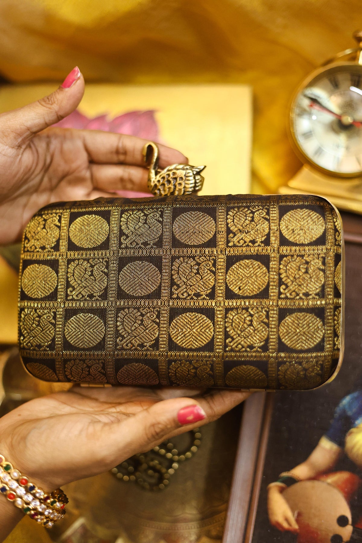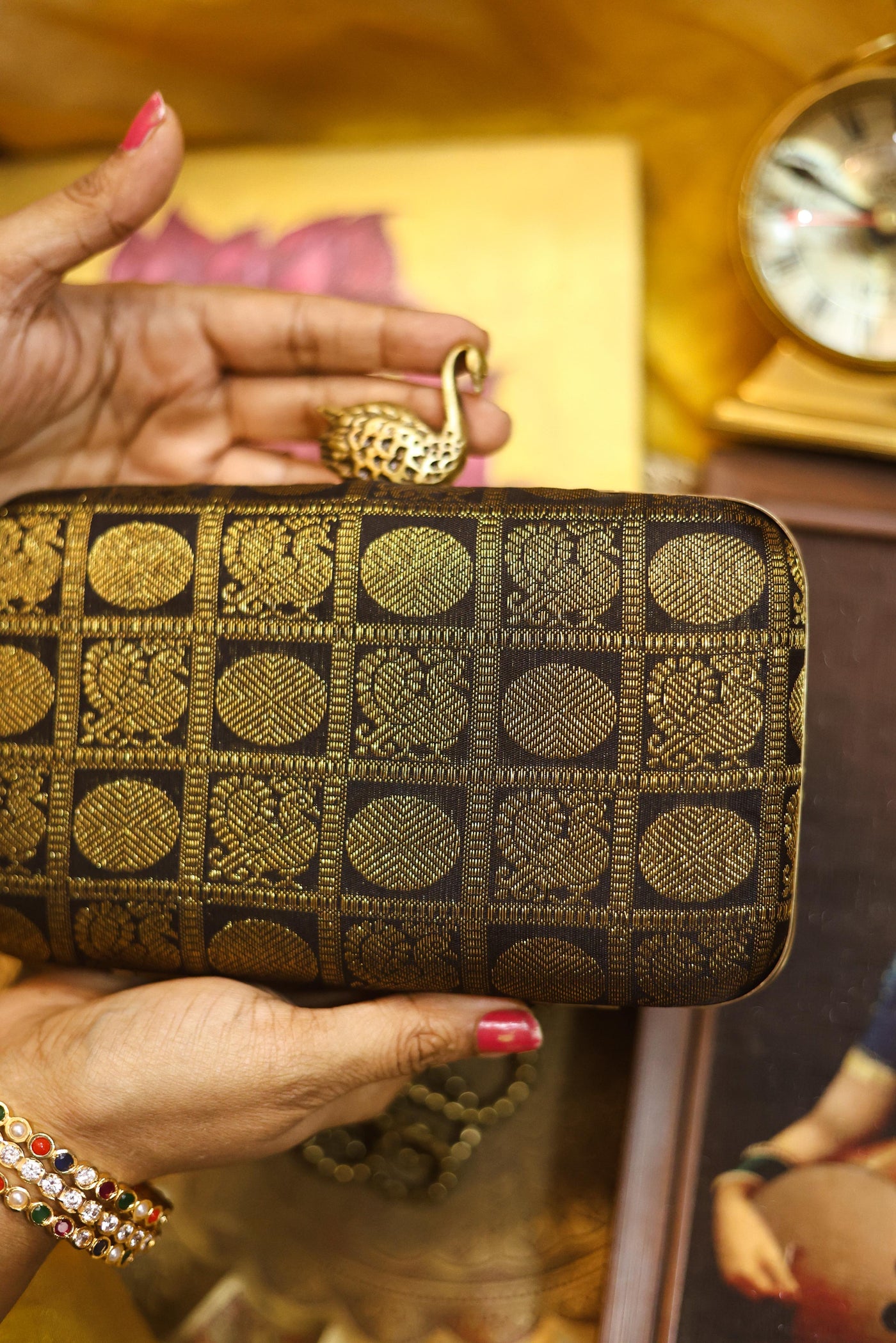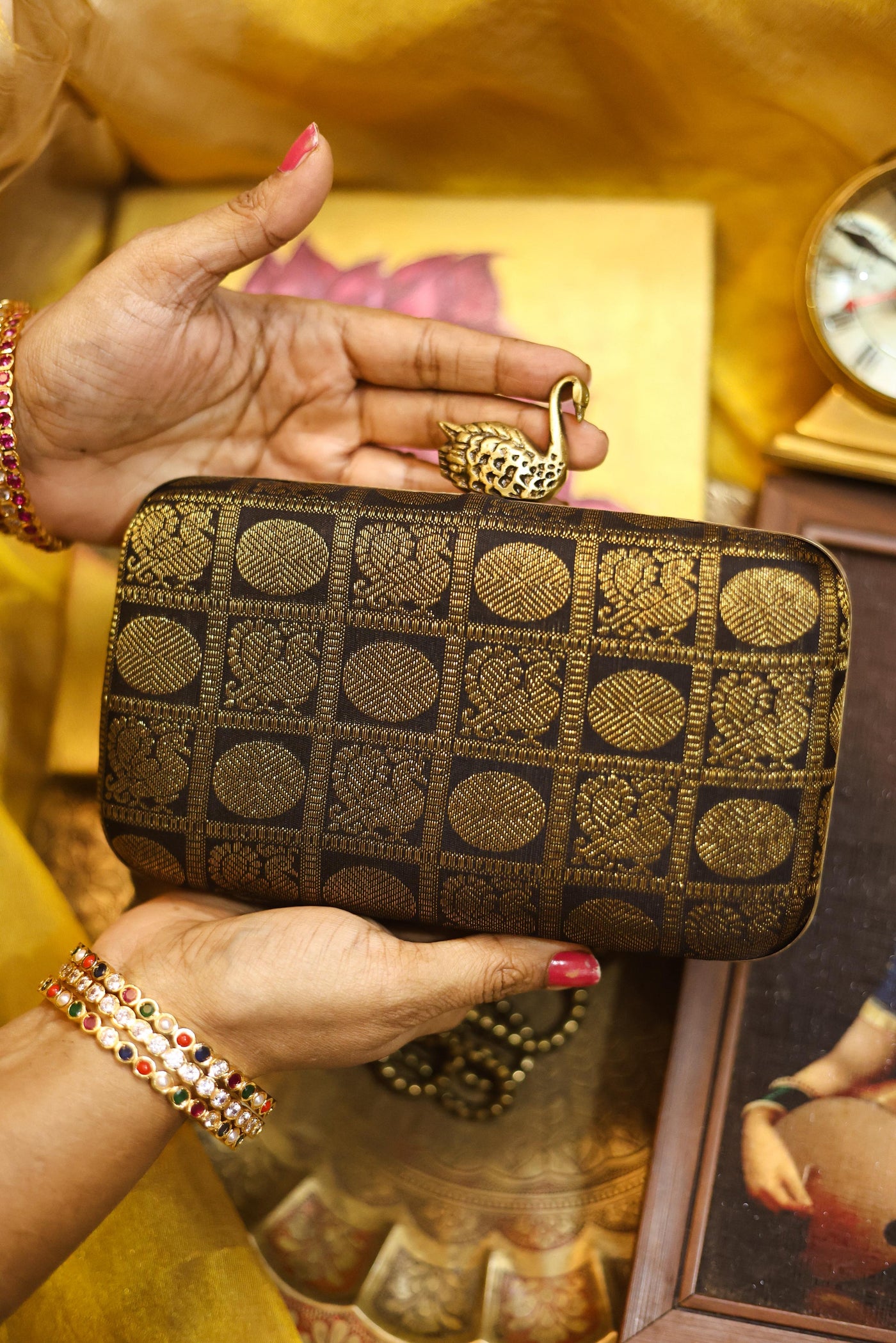 Test First: Always test the solution on an unseen part of the clutch (like inside the flap or bottom) to ensure no color bleeding or fabric damage.