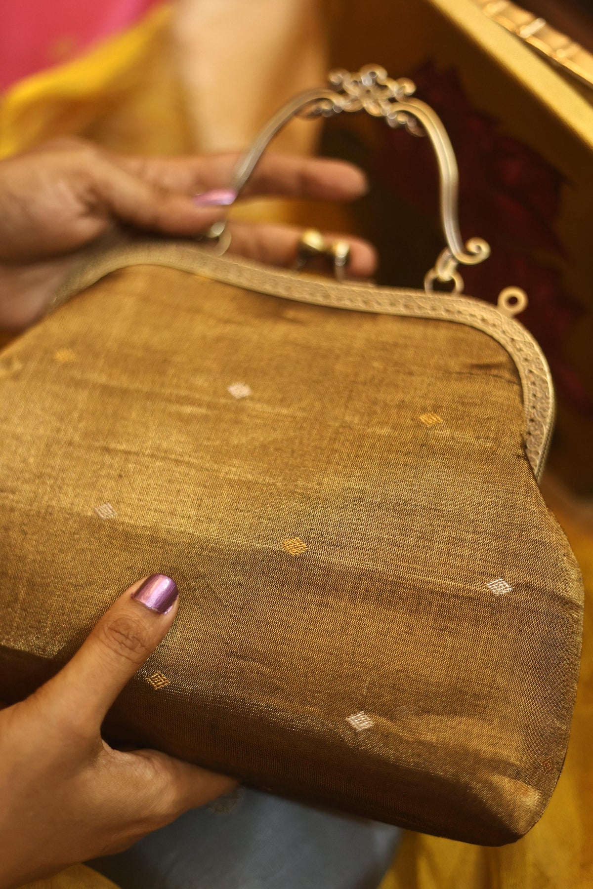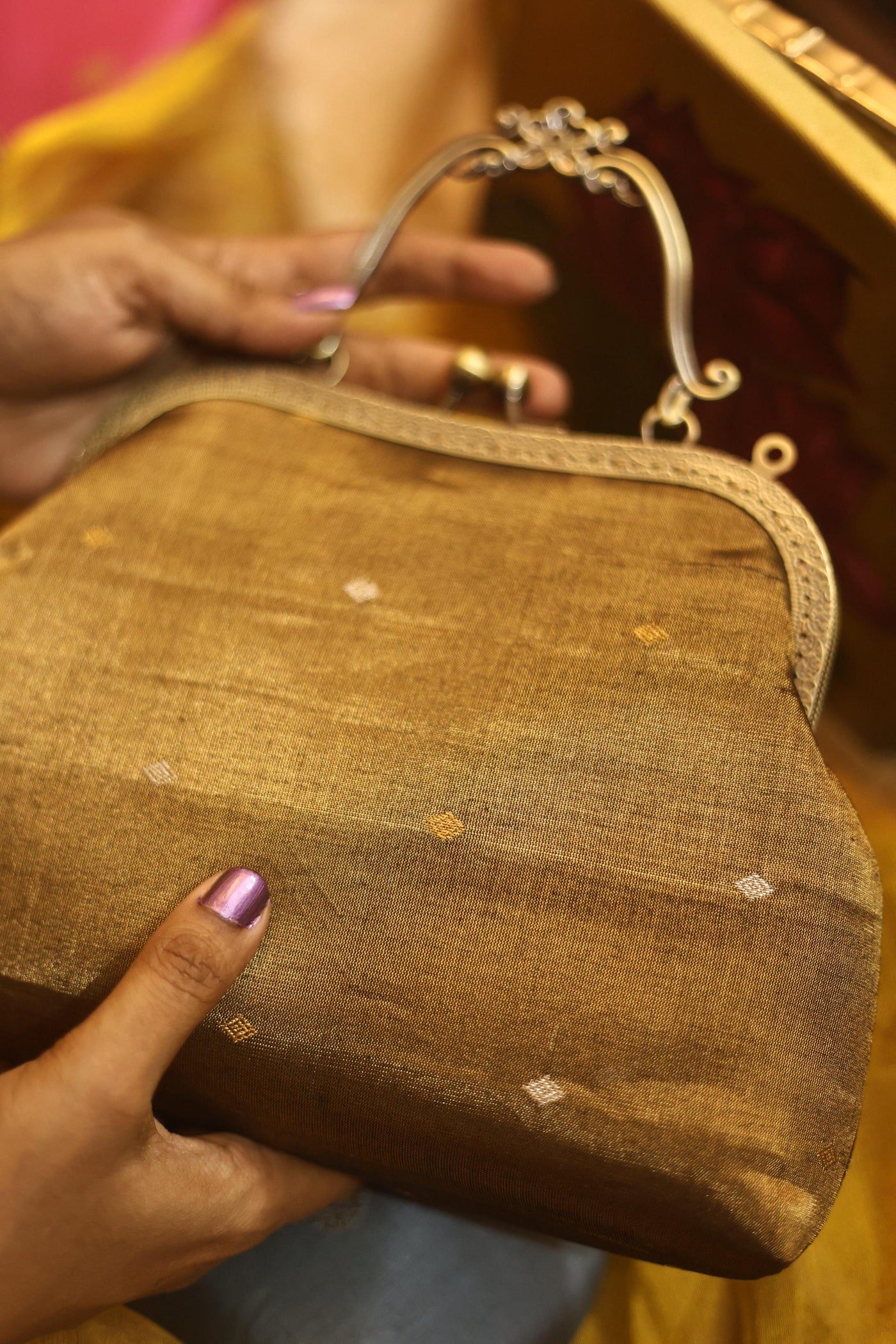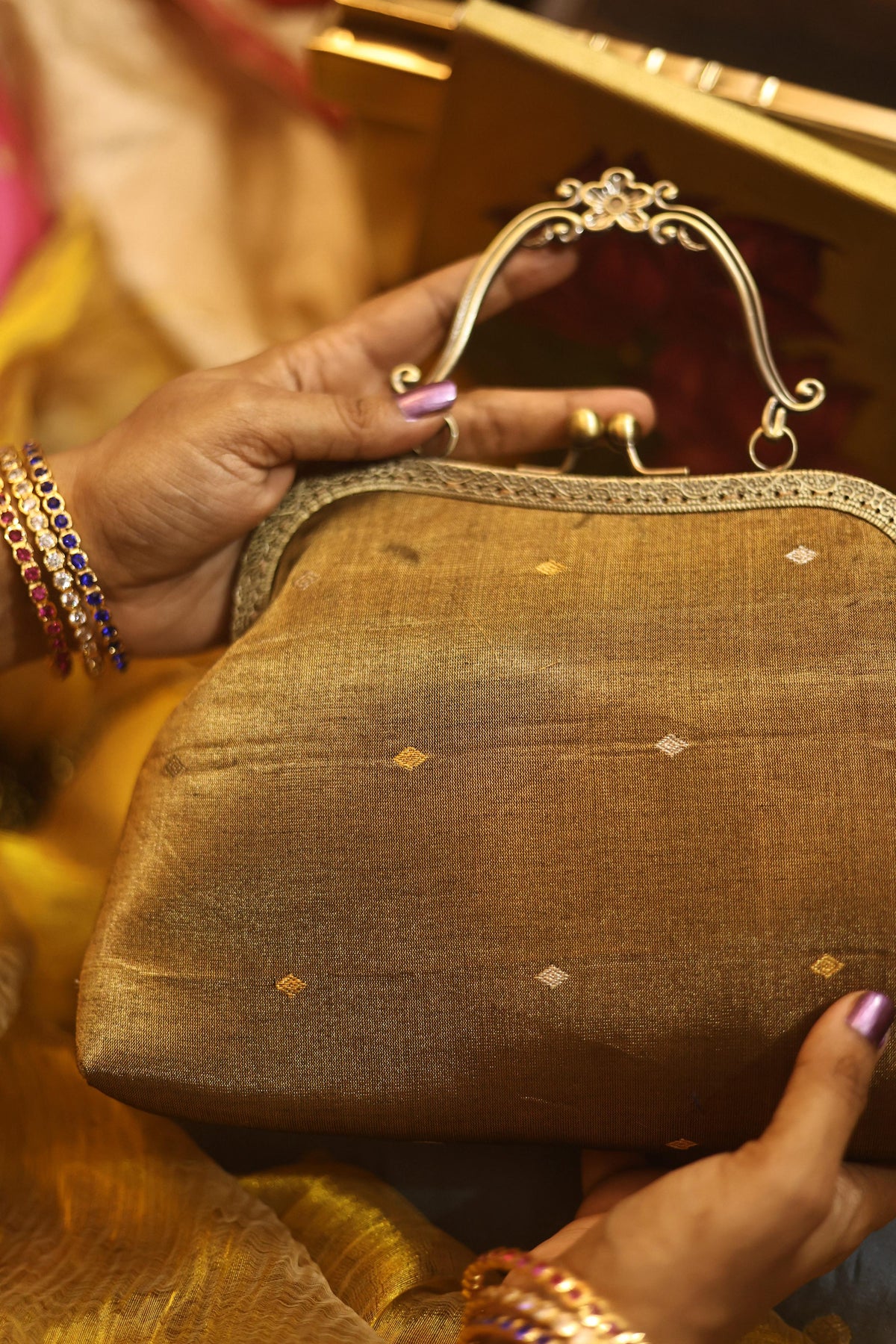 Test First: Always test the solution on an unseen part of the clutch (like inside the flap or bottom) to ensure no color bleeding or fabric damage.