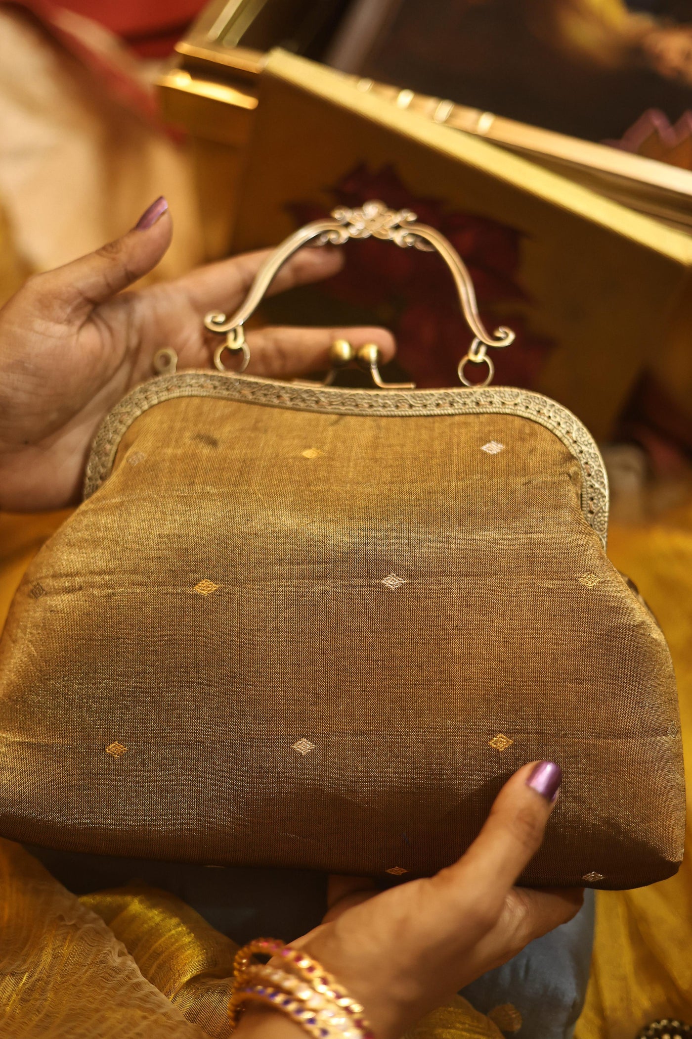 Comes with antique metal frame handle*comes with antique detachable chain And pearl