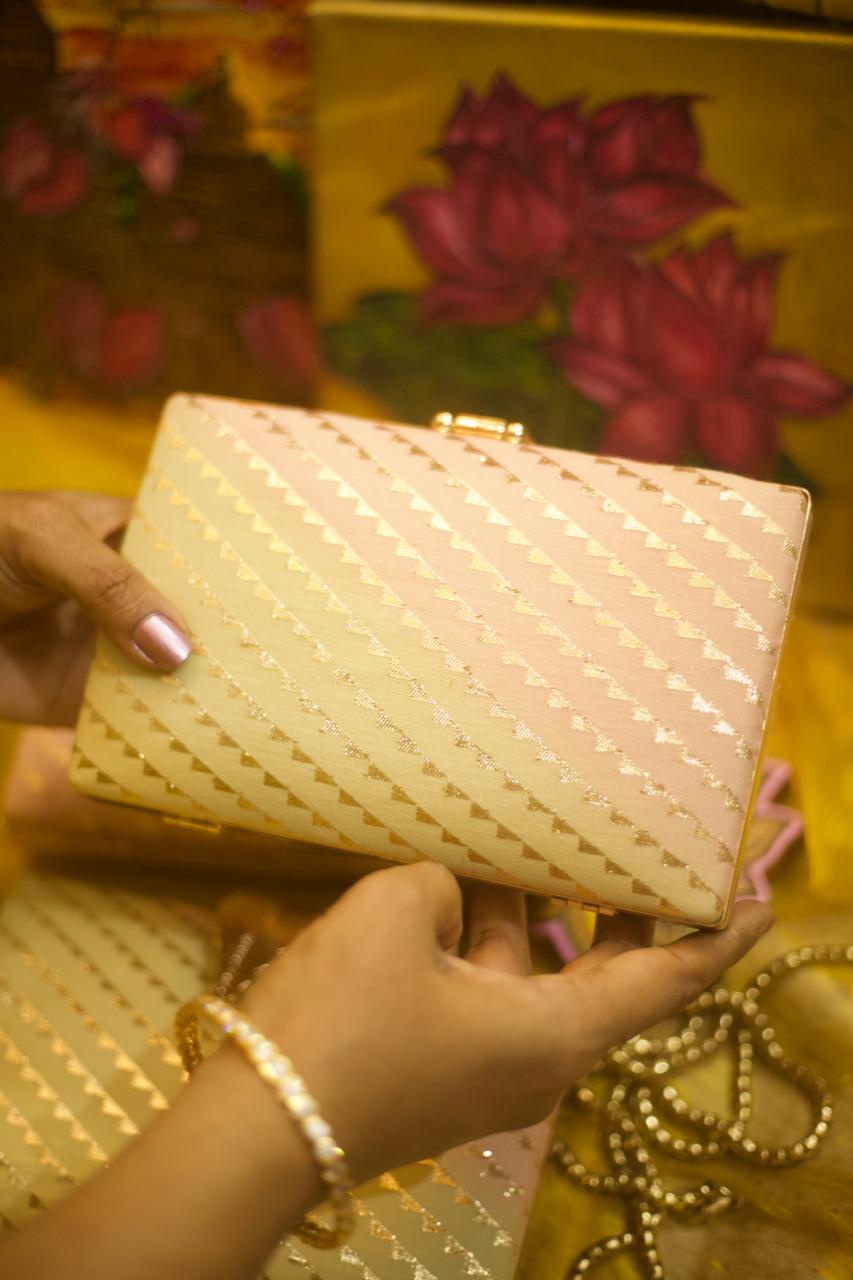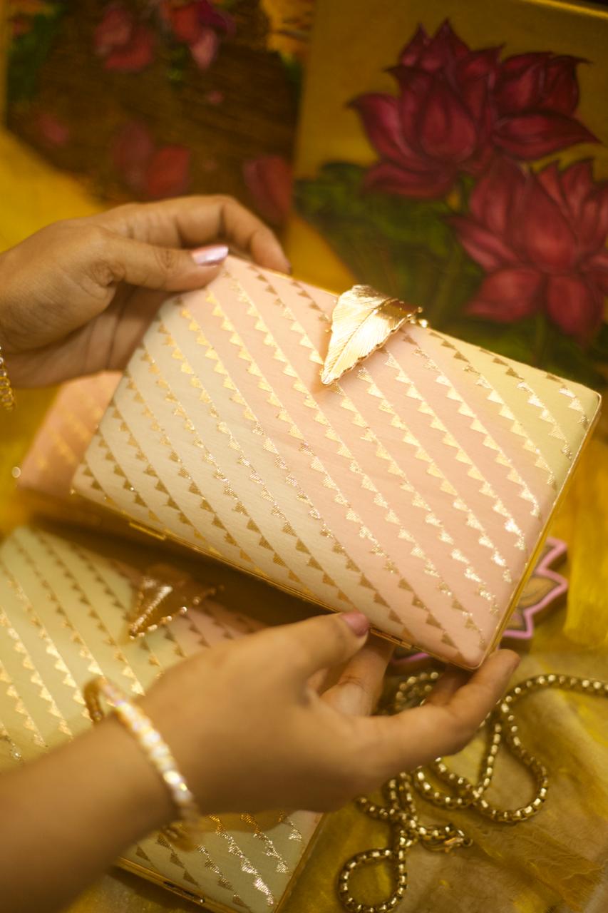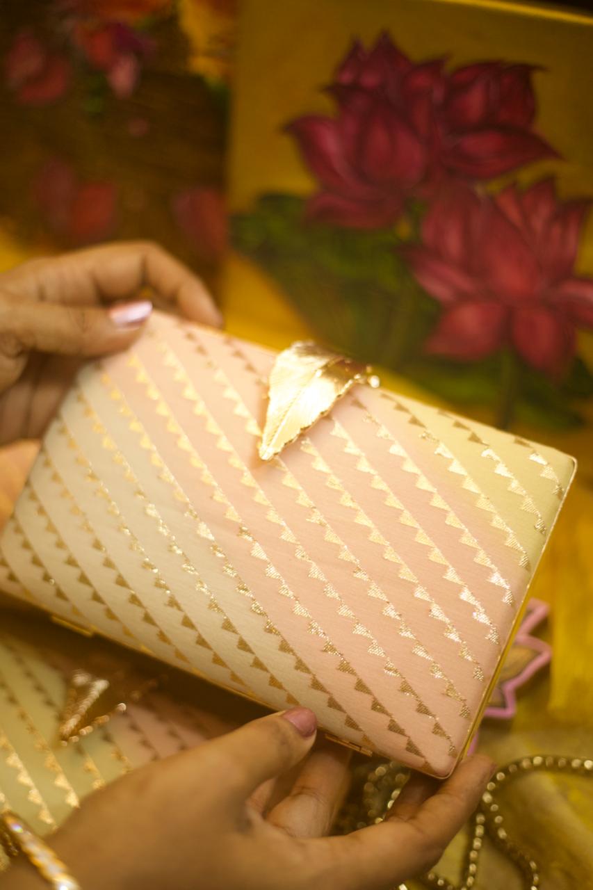 Motif placement is not identical on every clutch, adding to the individuality of each handcrafted piece.