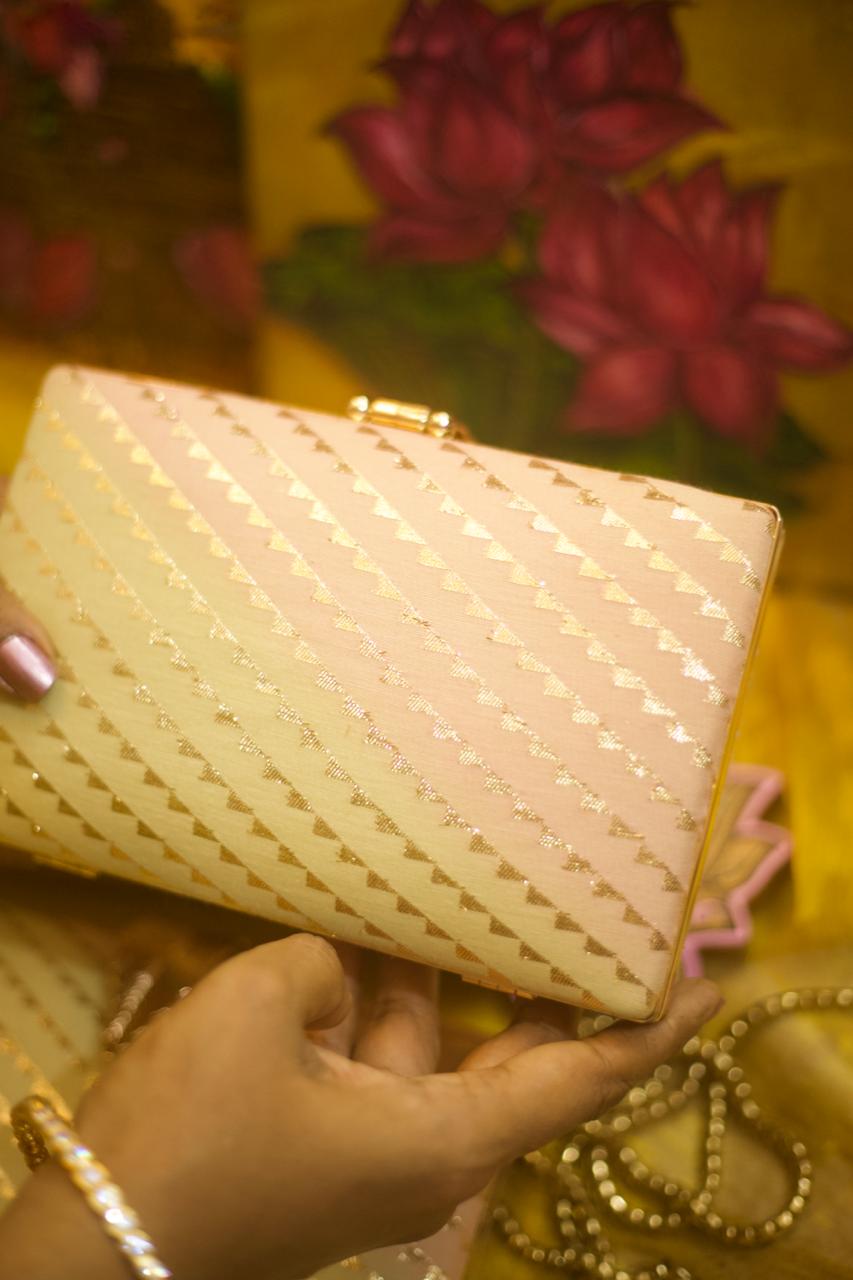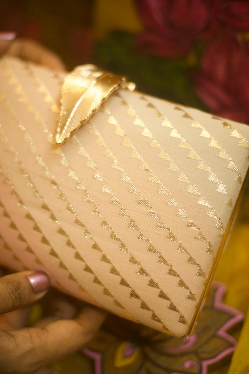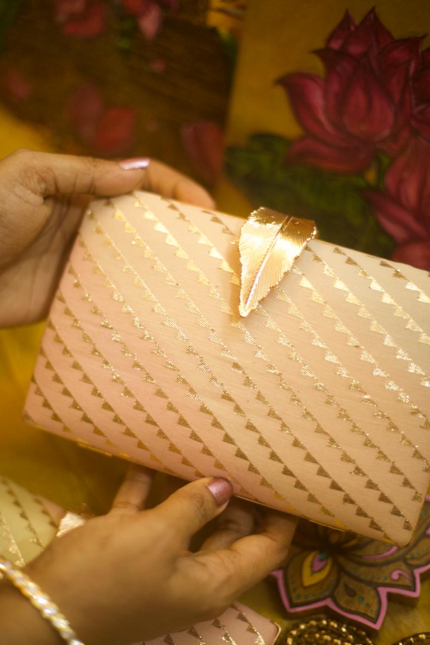 Motif placement is not identical on every clutch, adding to the individuality of each handcrafted piece.